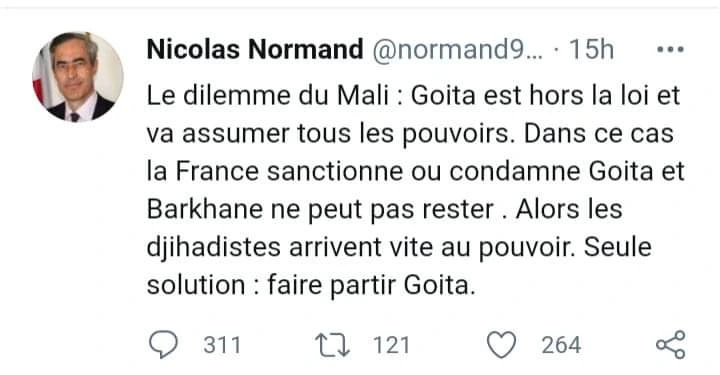 Pour des internautes, ces propos de monsieur Nicolas Normand sont considérés comme de la pure ingérence dans les affaires du Mali, voire de la provocation. Pour d’autres, c’est la preuve que la communauté internationale et particulièrement la France ont deux poids deux mesures. Car personne n’a osé condamner la prise de pouvoir dans des conditions similaires du fils d’Idriss Déby Itno au Tchad. Rappelons toutefois que l’homme a parlé par expérience du dossier malien.