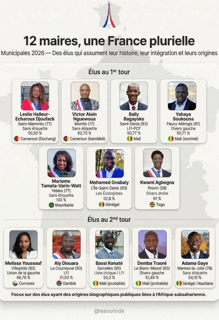 Les résultats du second tour sont là, et la victoire est historique ! 12 personnalités issues de la diaspora vont diriger des mairies en France après ces municipales 2026.